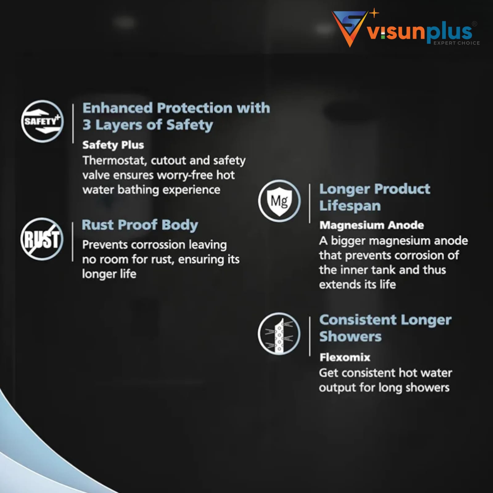 • Warranty Period: 1 Year Limited Domestic Brand Warranty on Product & 5 Years on Inner Tank/Container. Enjoy the hassle free warranty by Visunplus on your product.